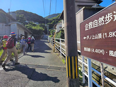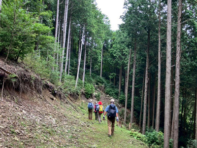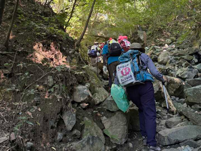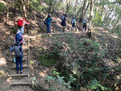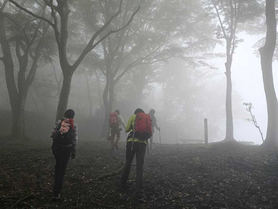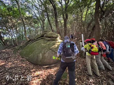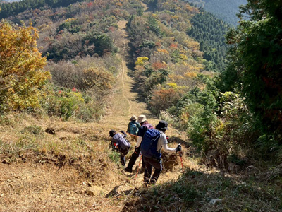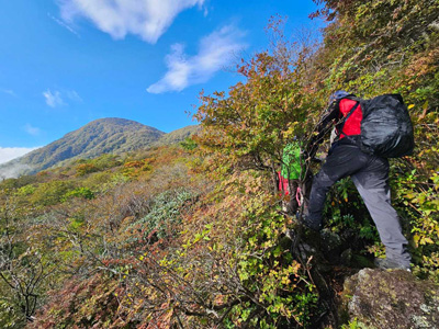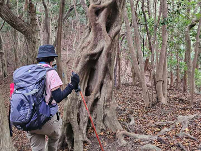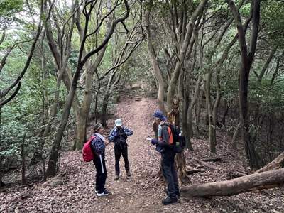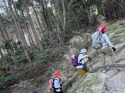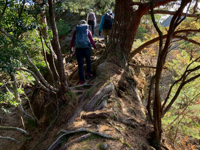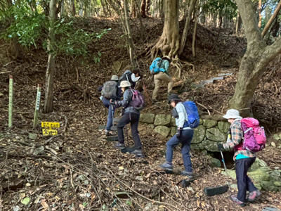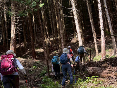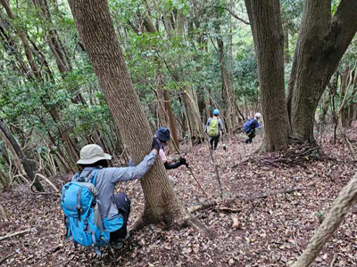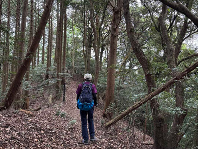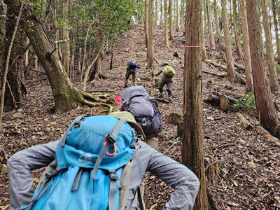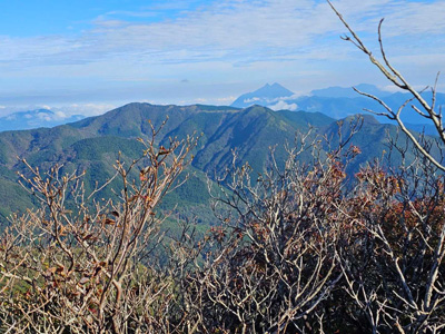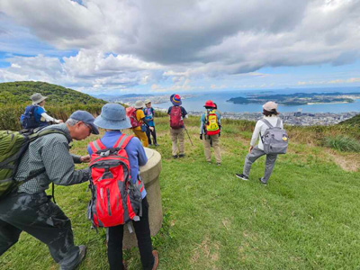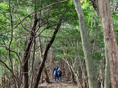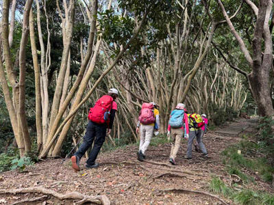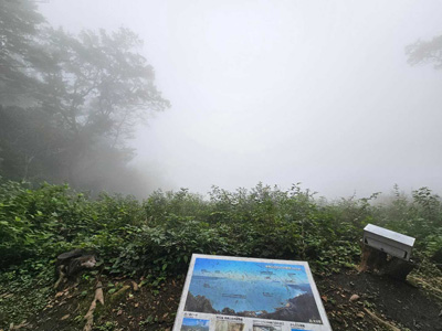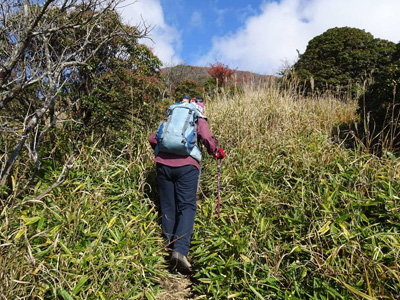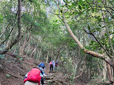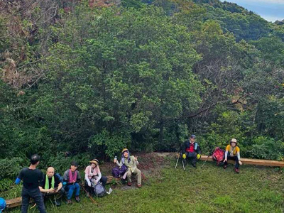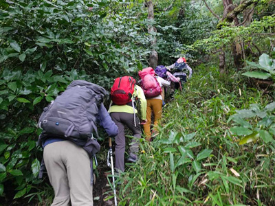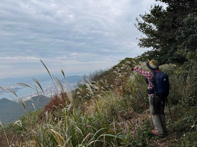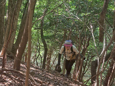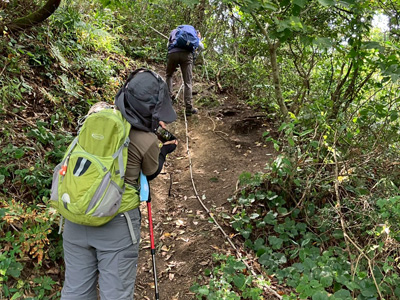 海アルプスの登山道は木々や雑草が生い茂り、海の景観を楽しみながらの稜線歩きを期待してたが、残念ながら木々に遮られ海はほとんどみえません。そのうえ雑草の中を歩くとズボンやアームカバーに『ヒッツキボ』がつき、取れなくて苦労しました。こんな登山道もあるのだと初めての経験でした。