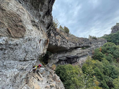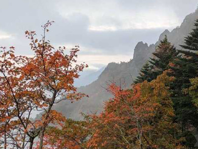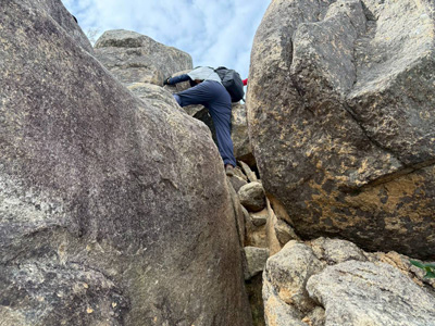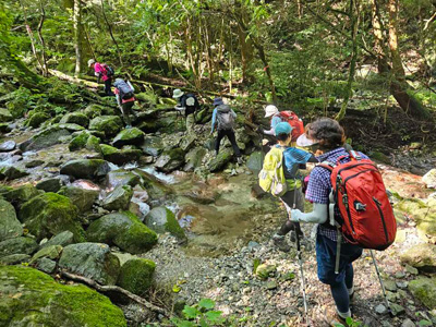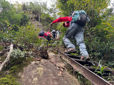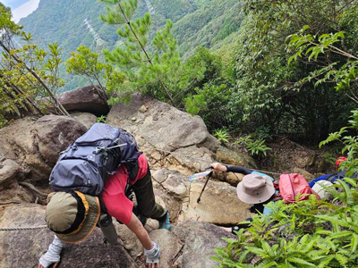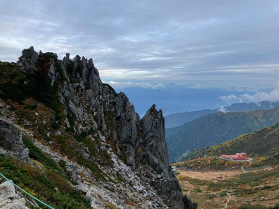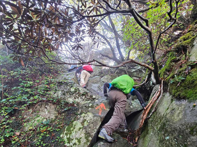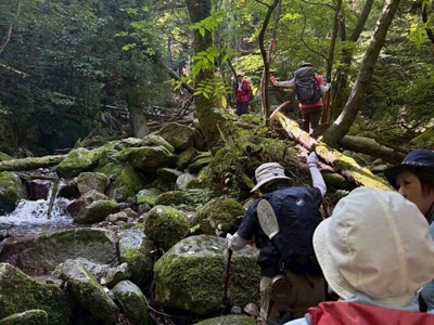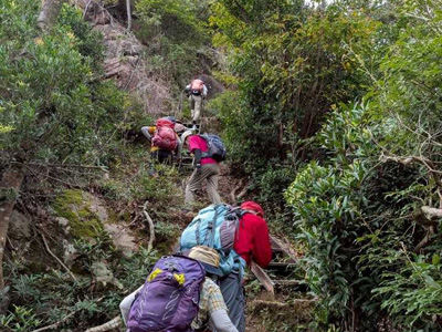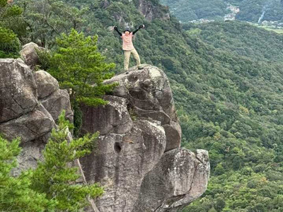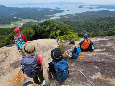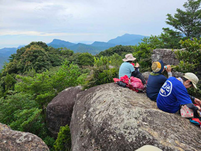 1日目 低山ながらアスレチックのような岩場もあり何度来ても楽しい山。 湿度が高くてムシムシ。次郎丸岳のライオン岩では1人ずつポーズをとるお決まりのお楽しみあり雲仙や、明日登る観海アルプスを眺める。下山途中は遠くに雷鳴、雨がパラつくがすぐに止みレイン要らず。