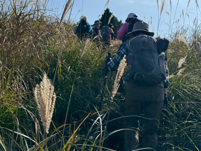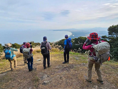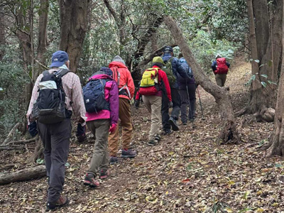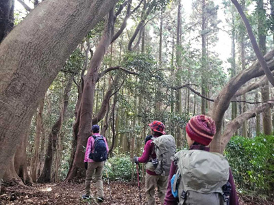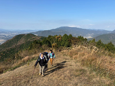 とてもハード・・と聞いていた宗像四塚縦走、ほんとにハードでした。登って下って登って下って・・。急傾斜の登りは、無言でただひたすら足を運ぶ。急下りでは転ばないように気を付けていても、ズルリ。最後の城山の登りの時には思うように足が動きませんでした。でも、皆さんと一緒に最後まで歩き通すことができて大満足です。
