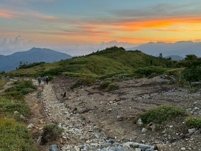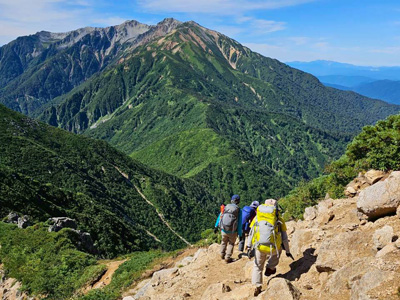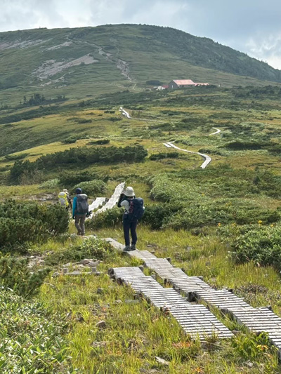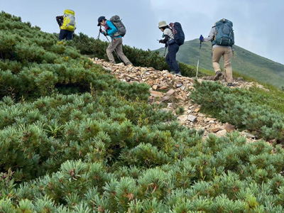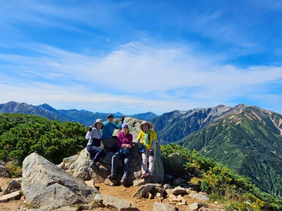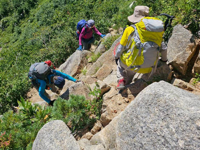 登りは予想通りきつく、体力の限界だ。最後は梯子・岩場の連続で険しいが、山頂の絶景は素晴らしい。小屋泊は4人で独占…のびのび眠れた。障子岩尾根コースはアップダウンの岩場も多く、道間違いしそうな難路。朝から足が重く、自信のないスタートだったが、道間違いもなく、ケガもなく、無事に下山出来て本当にほっとした。きつかったけど達成感のある2日間だった。