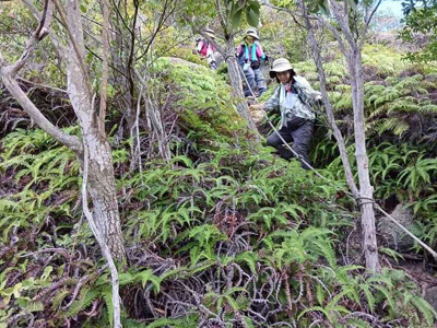 2日目は大障子岩や障子岩までは多少のアップダウンはあるものの、歩きやすくて岩場もあり楽しかった。障子岩からが急な下りと危険な箇所も多々ありで、緊張の連続と足に負荷がかかりかなり疲れました。2日間ハードな山行でしたが、無事に下山できお二人に感謝です。個人的にはなかなか行けないコースなので良い経験ができました。